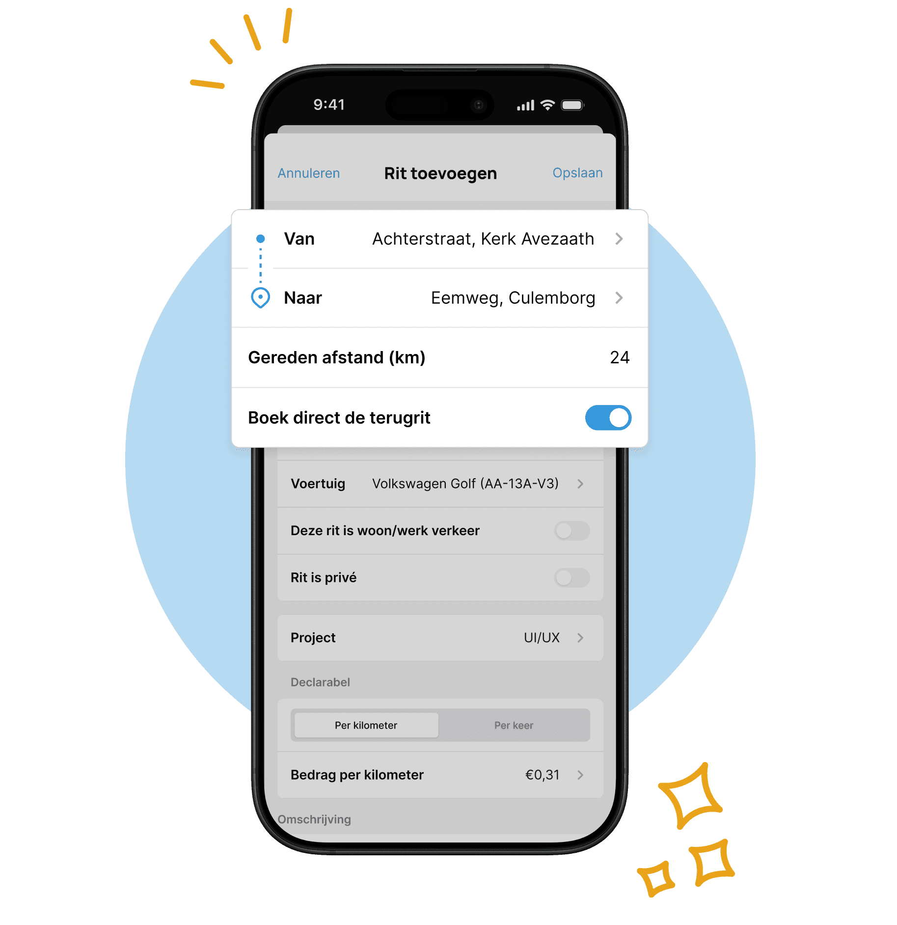 Een rit is snel gereden en zo vergeten. Voer ze daarom direct in. Dan houd je jouw rittenadministratie up-to-date.